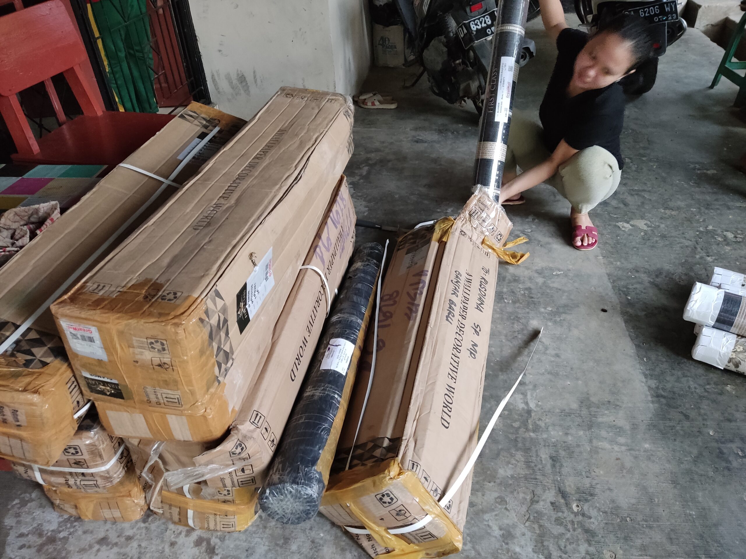 Proses datangnya barang di Kalimantan interior berupa wallpaper dan costume membutuhkan waktu hampir satu minggu, mengingat akhir ramadhan yang mana banyak pengiriman barang dari luar daerah.. Alhamdulillah barang datang sore hari kamis 28 April 2022..dan langsung diantar pagi hari jumat jam 07.30wita beserta team pemasang interior. Dengan jarak tempuh 3 jam…kalimantan interior mengutamakan pelayanan..