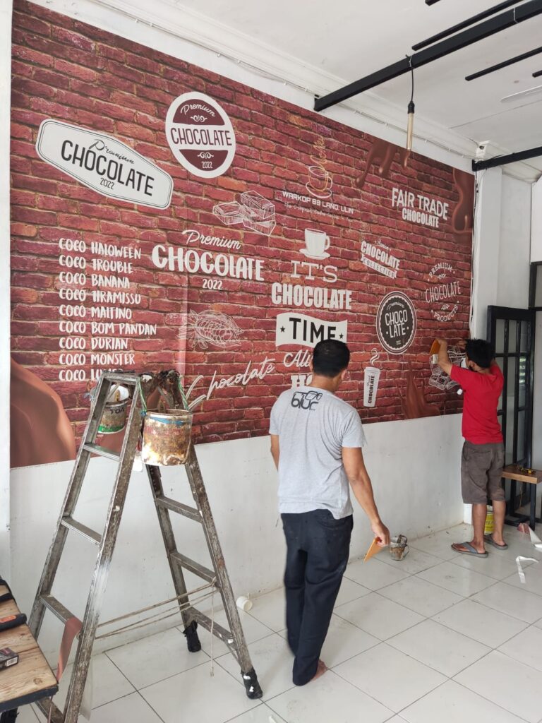 Pemasangan Wallpaper Di Warkop 88 Land Ulin, Banjarbaru.