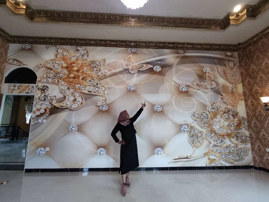 Pemasangan Wallpaper Motif Floral di Gunung Benuang Kalsel